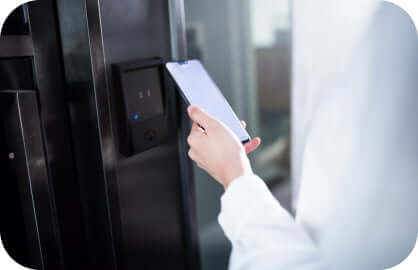 Leveraging Express Mode features of your smart phone, Nexeu Student ID is as simple as a tapping your device next to a lock or reader. Your phone and the reader communicate without the phone having to be unlocked. This feature can be enabled for higher-traffic facilities and disabled for more secure spaces.